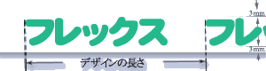 | ①デザインの長さがピッチ幅になります。 ②デザインの幅はテープ幅より両端各3mmずつ狭くなります。 ③使用文字の大きさは8級(7号)以上です。 ④ケイの太さは0.2mm 以上のものに対応できます。 ⑤印刷ピッチは最大360mmまで対応可能です。 |